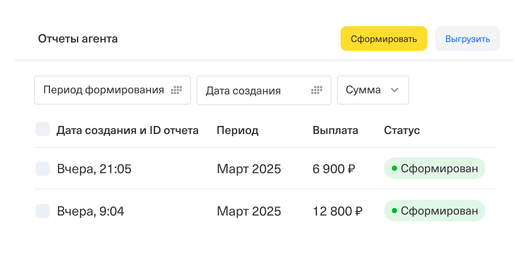 Агентские отчеты по юрлицам