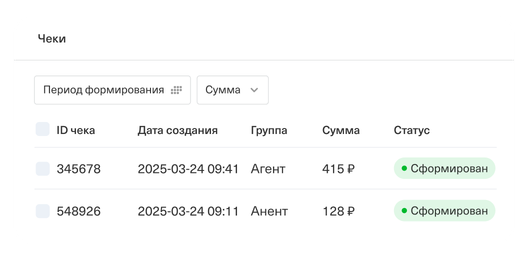 Автоформирование чеков на комиссию таксопарка по каждой выплате