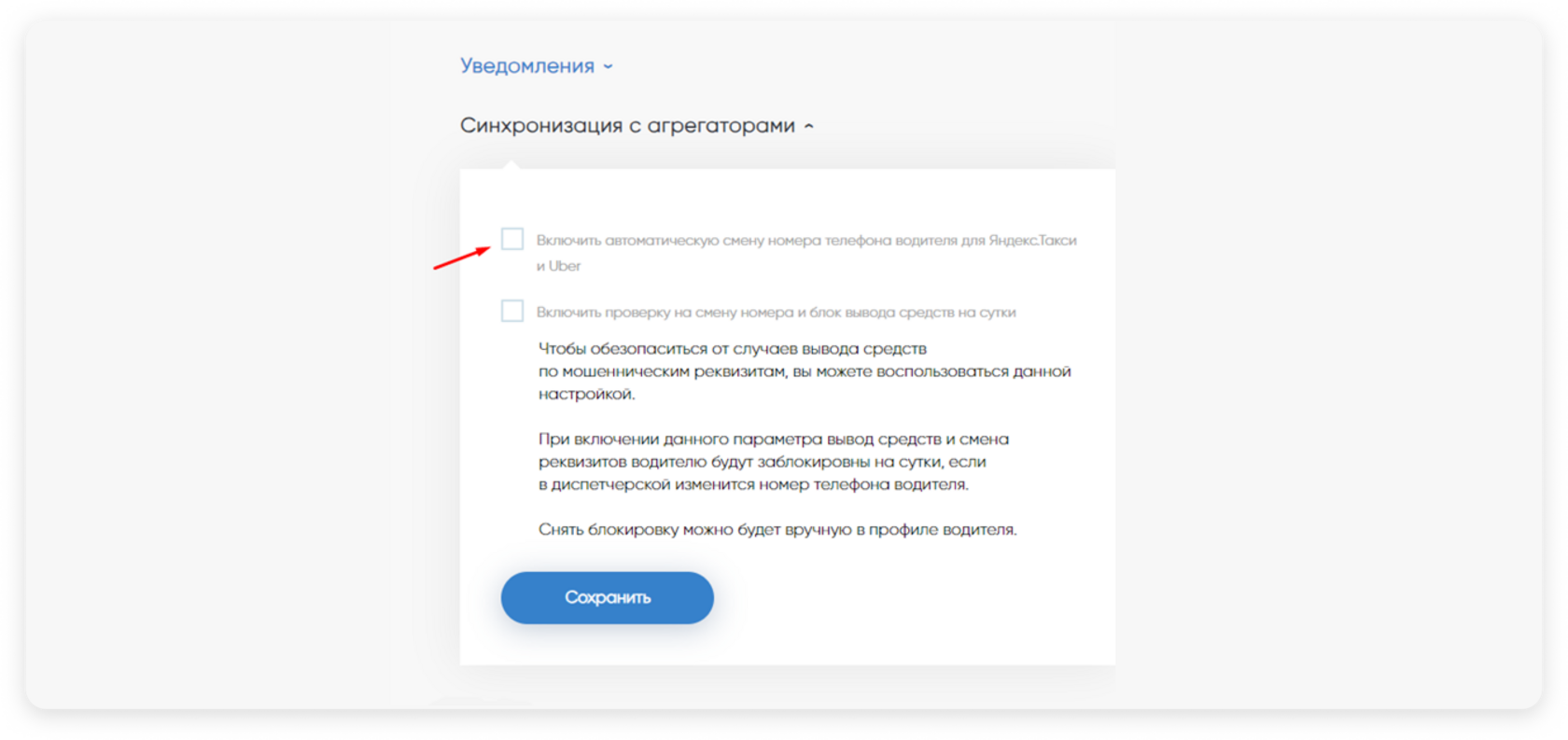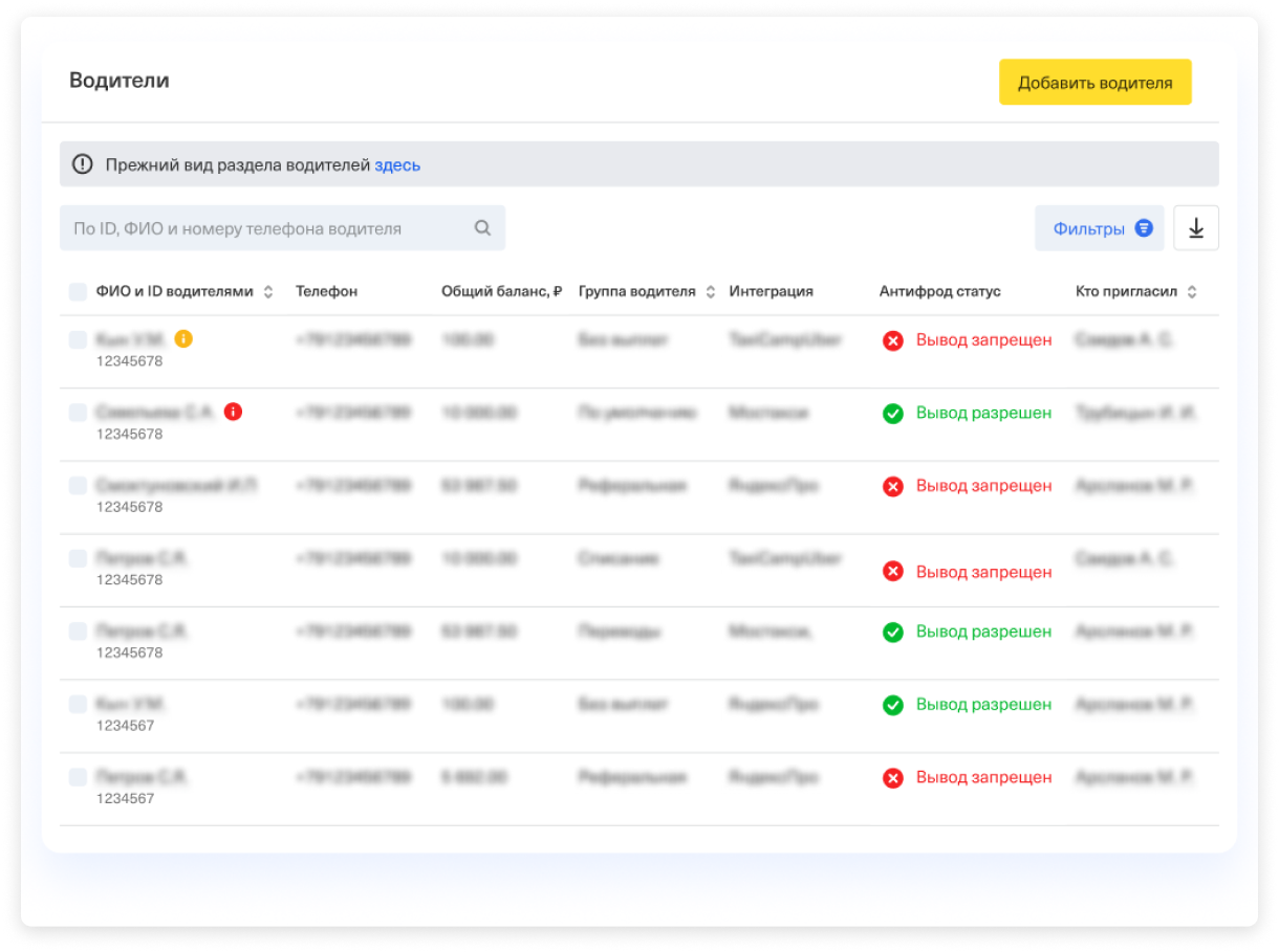 ✓ Отключили синхронизацию номеров телефонов водителей с диспетчерскими агрегаторов Яндекс и Uber всем таксопаркам