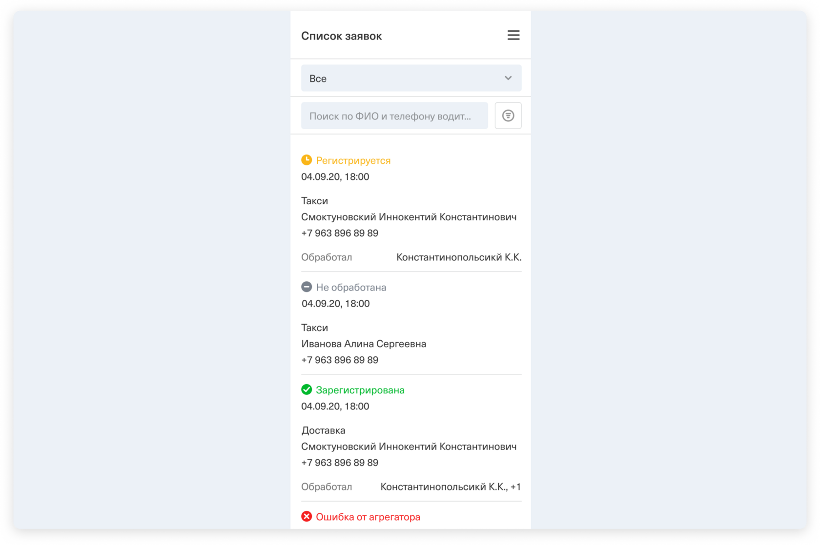 ✓ Разработали мобильную версию раздела «Список заявок» веб-регистрации