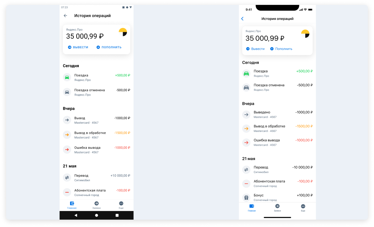 ✓ Изменили отображение данных по поездкам на экране «История операций»
