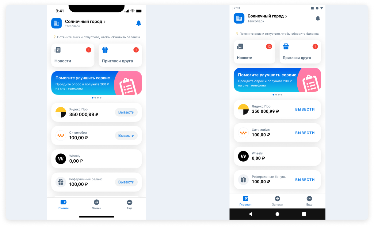 ✓ Обновили экран «Сводка» в личном кабинете: общий баланс всех водителей вынесли в отдельный блок