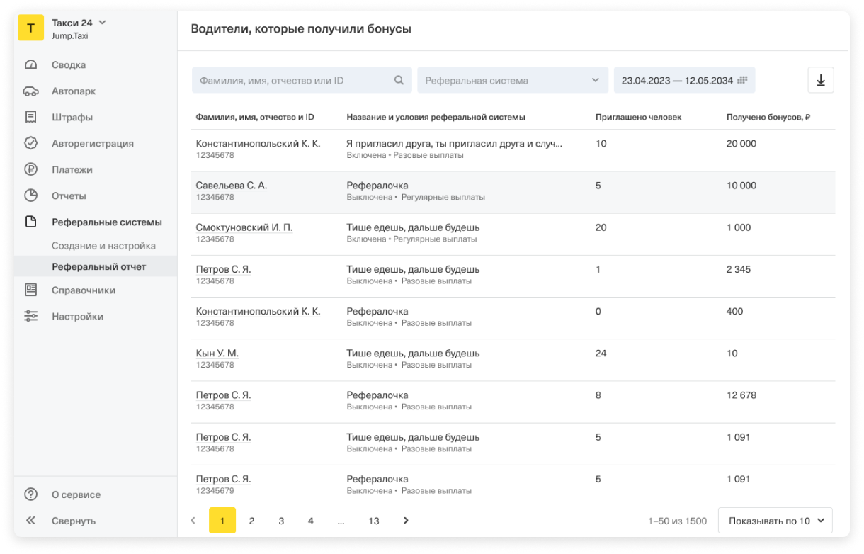 ✓ Обновили раздел «Реферальные системы» в личном кабинете Jump.Taxi