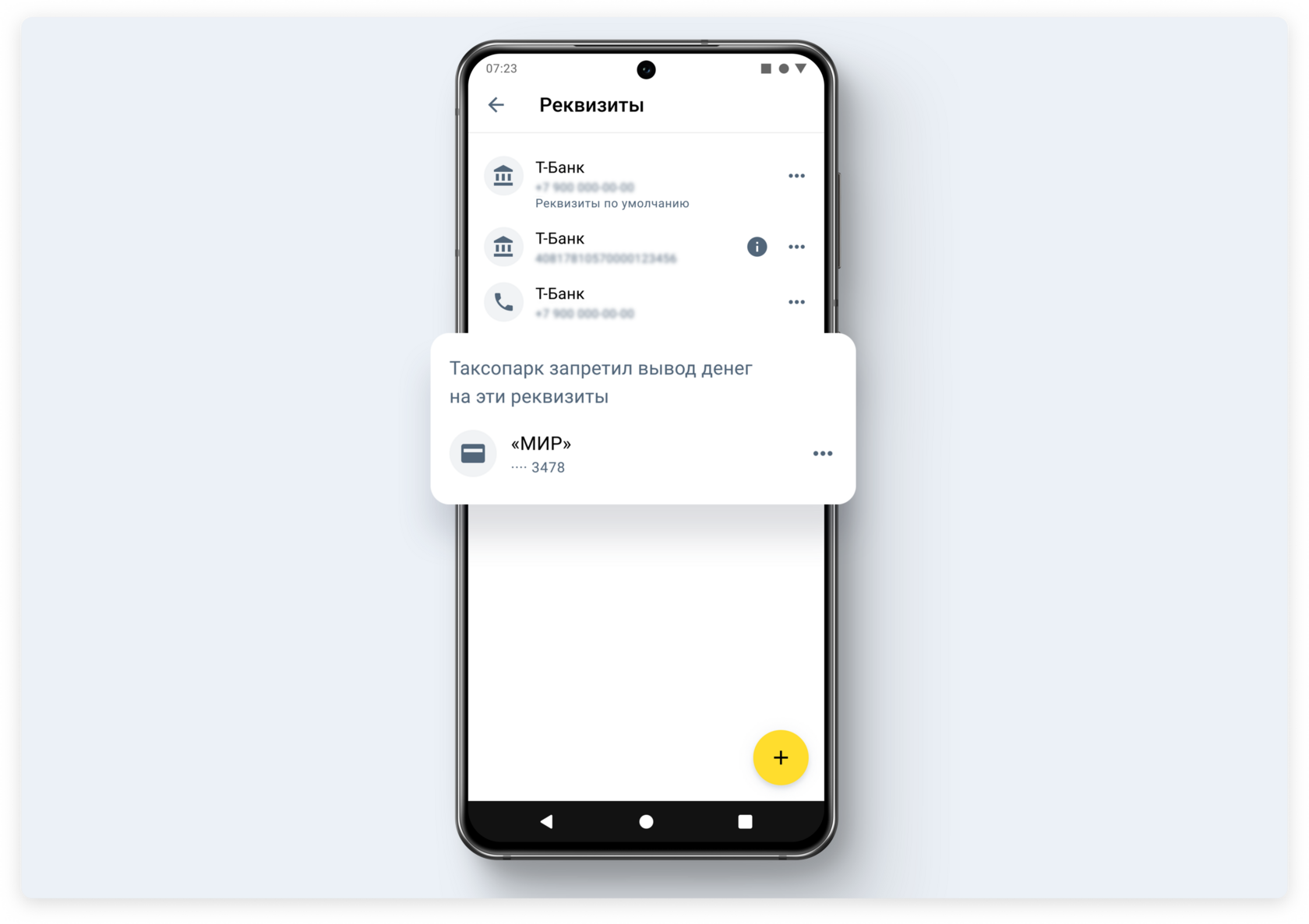 ✓ Добавили возможность ограничить вывод средств на отключенные типы реквизитов