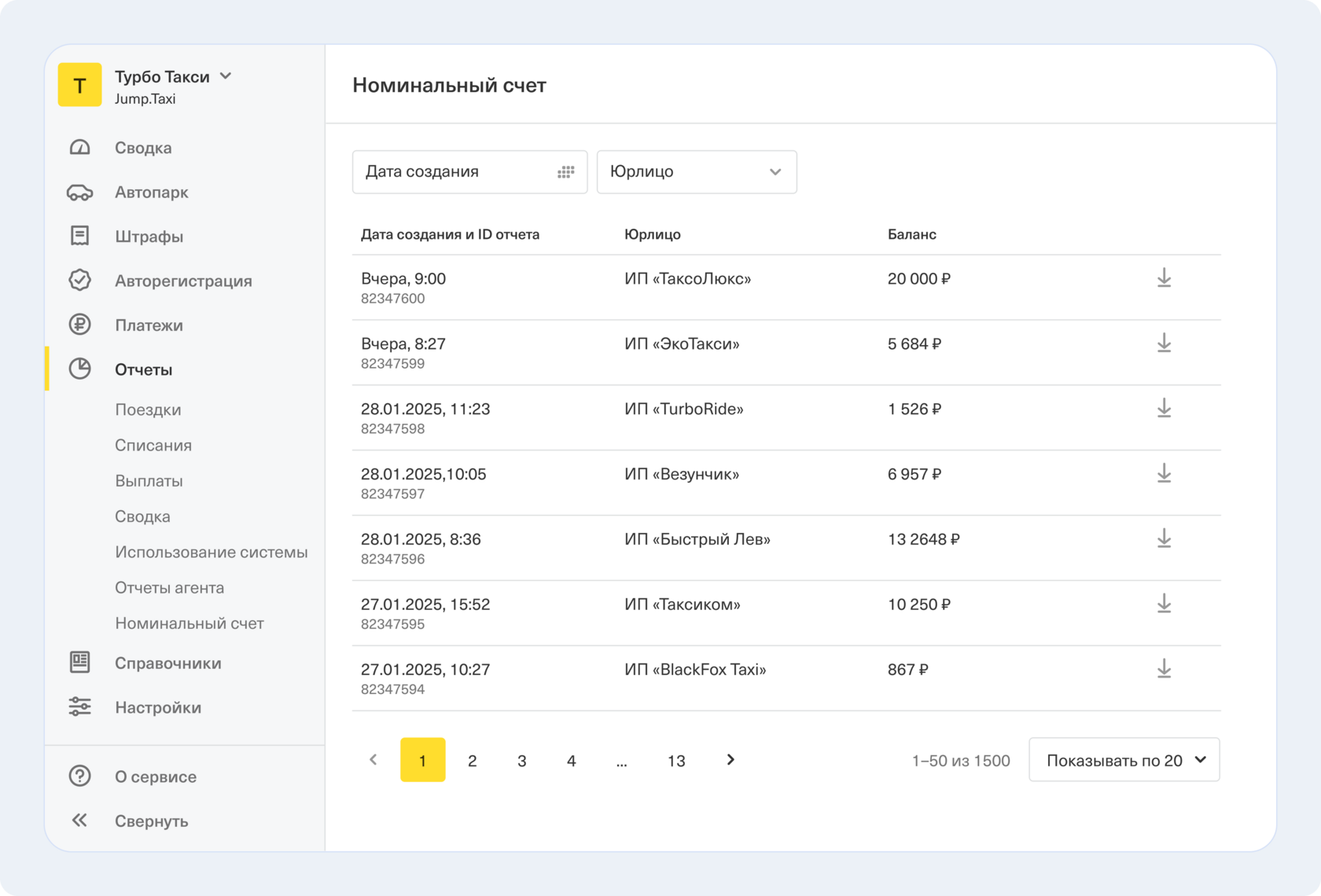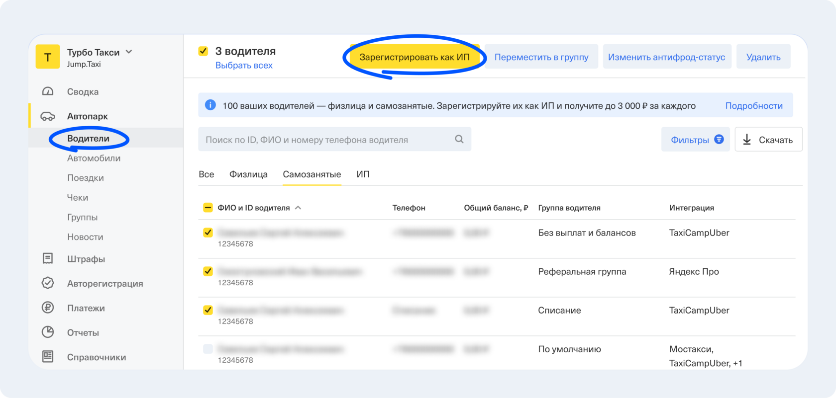 ✓ Подача заявок на регистрацию водителей как ИП в личном кабинете Jump.Taxi