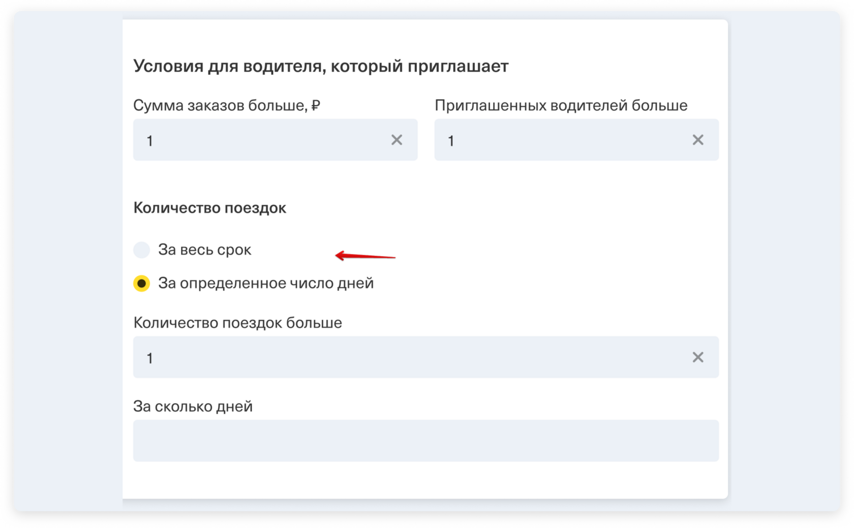 Если выбрать вариант «За определенное количество дней» и указать N дней, тогда система будет проверять, есть ли у водителя больше трех поездок за последние N дней. Если приглашающий водитель ушел в отпуск или перестал выполнять заказы по другой причине, он сможет получать бонусы за привлечение друзей и в период отсутствия. Добавили возможность ограничить вывод средств на отключенные типы реквизитов Если таксопарк отключил возможность выводить средства на определенный тип реквизитов, водитель больше не сможет в приложении назначить их реквизитами по умолчанию и выбрать в процессе вывода средств.