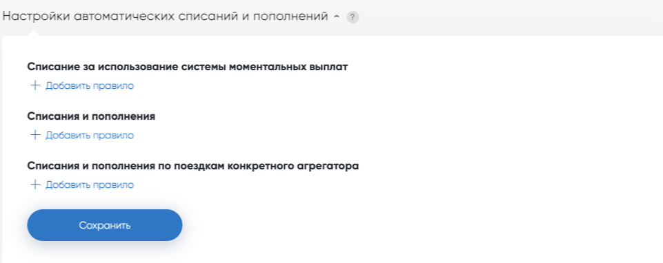 + Добавить правило — позволяет установить несколько правил, если требуется настроить различные типы и сценарии списаний и пополнений.