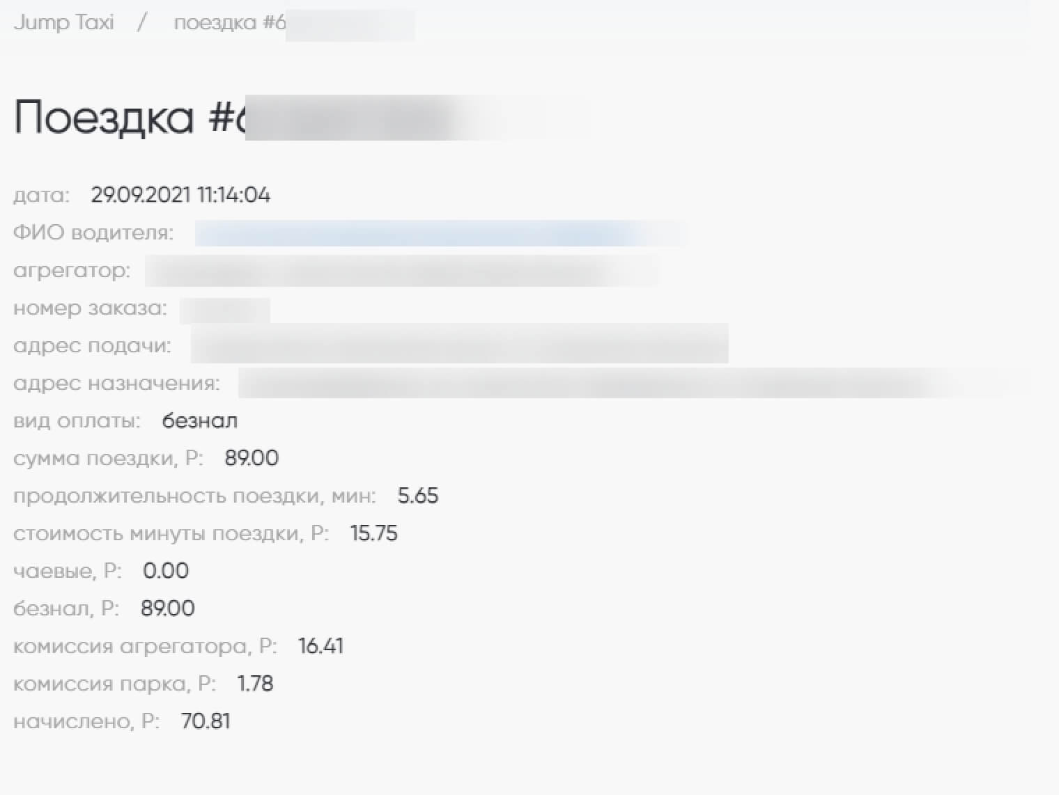 2. Нажав на ID поездки можно увидеть всю информацию о поездке.