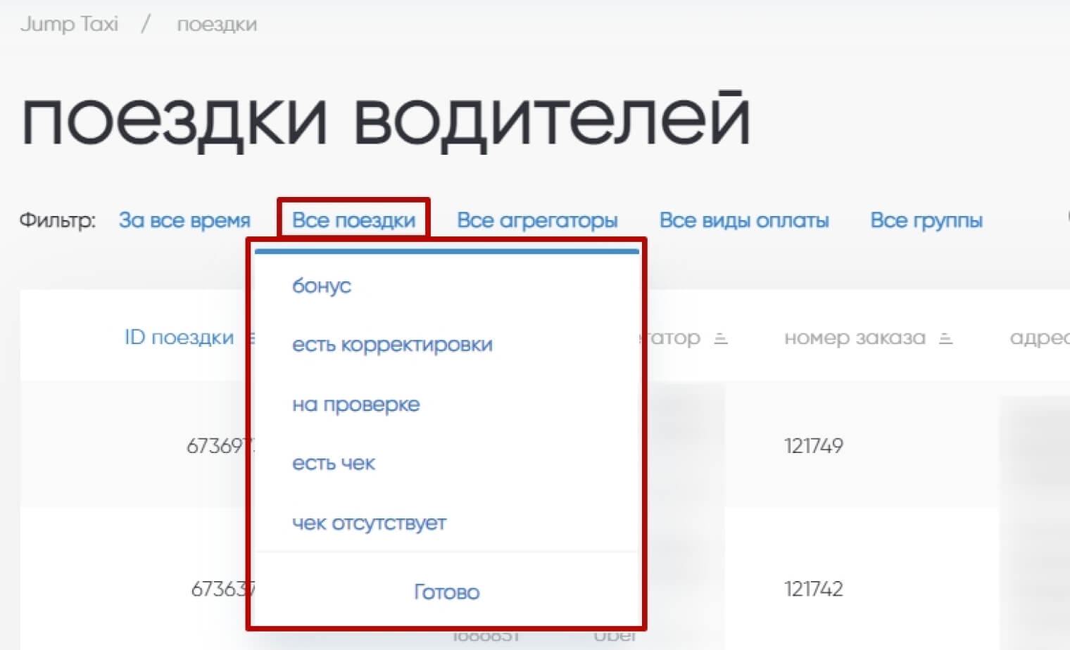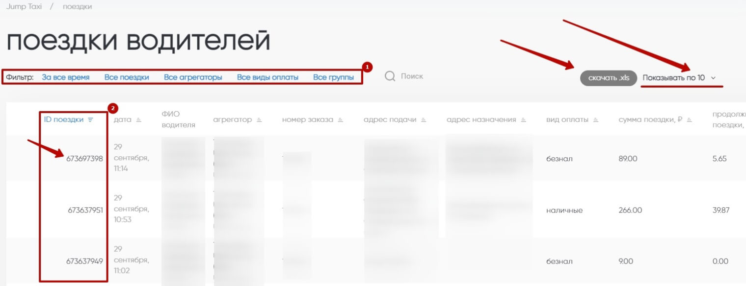 1. Здесь можно применять фильтры. Выбрать время, какие именно поездки, способы оплаты и т. д.