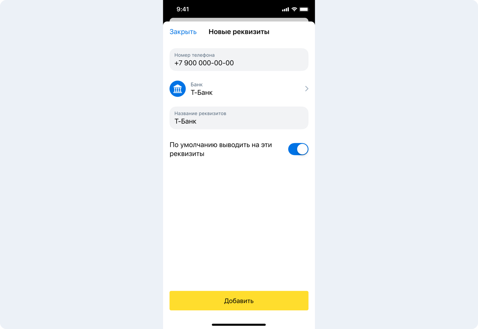 4. Заполните реквизиты и нажмите кнопку Добавить