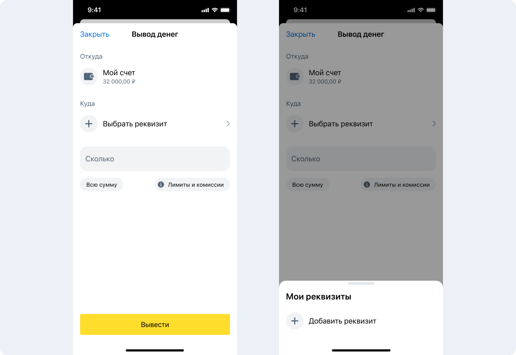 5. Вернитесь в карточку баланса. Введите сумму и нажмите кнопку Вывести