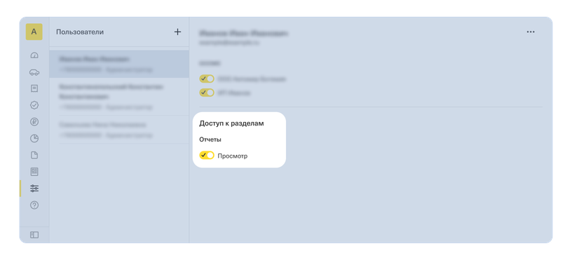 - отчет по поездкам.