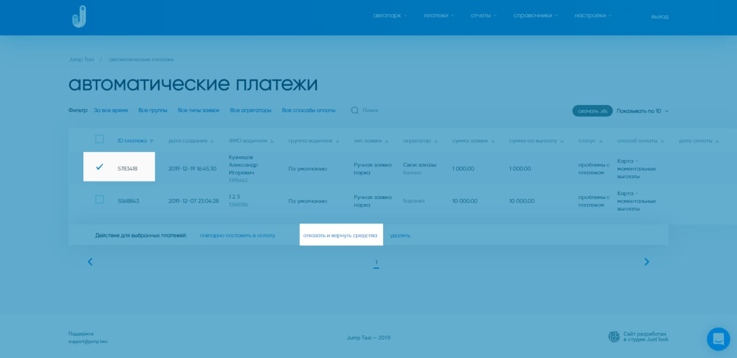 1. В разделе «Автоматические платежи» выделить проблемную заявку;