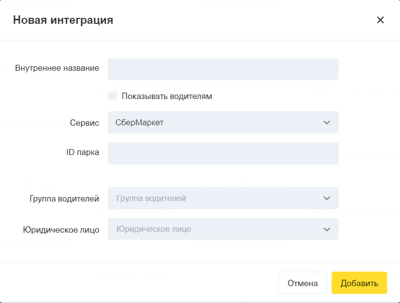 ⭢ В открывшемся окне укажите название вашей диспетчерской и выберите из списка СберМаркет.
